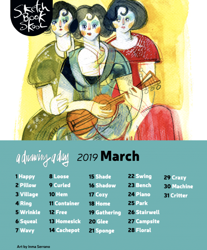 It’s March and spring is JUST around the corner. Draw it into the world with us! Here are the March prompts for A Drawing A Day.
