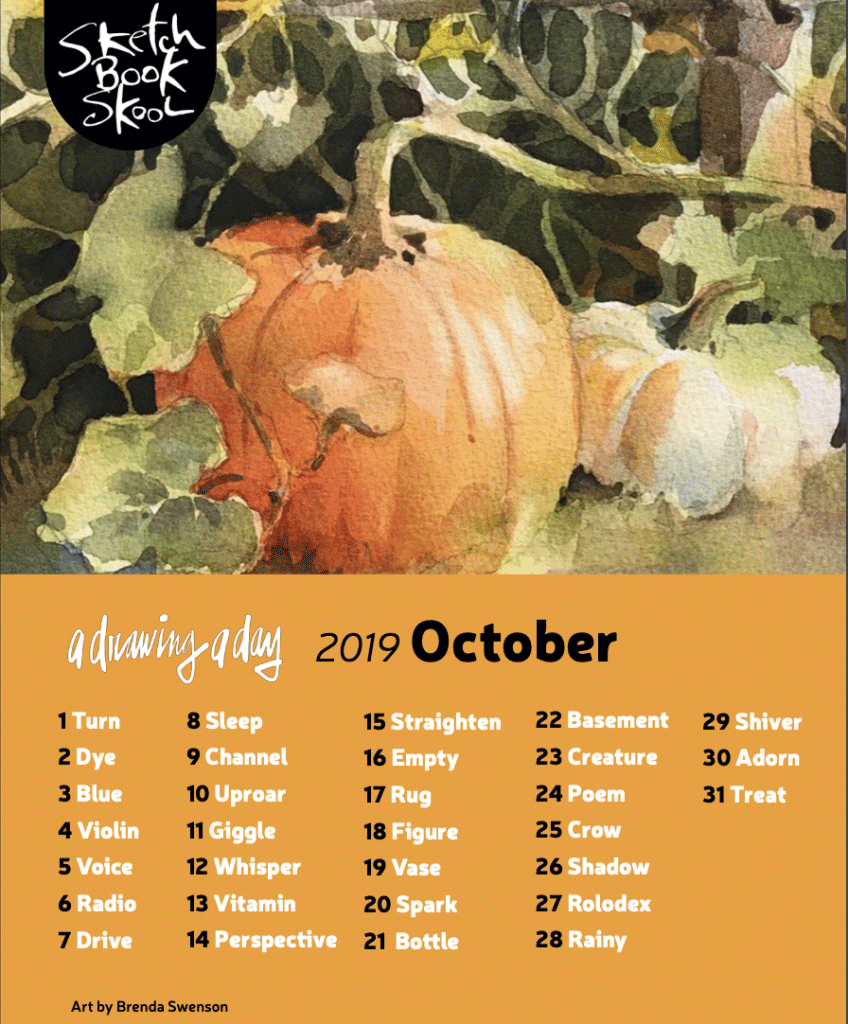 Here are the October prompts for A Drawing A Day!