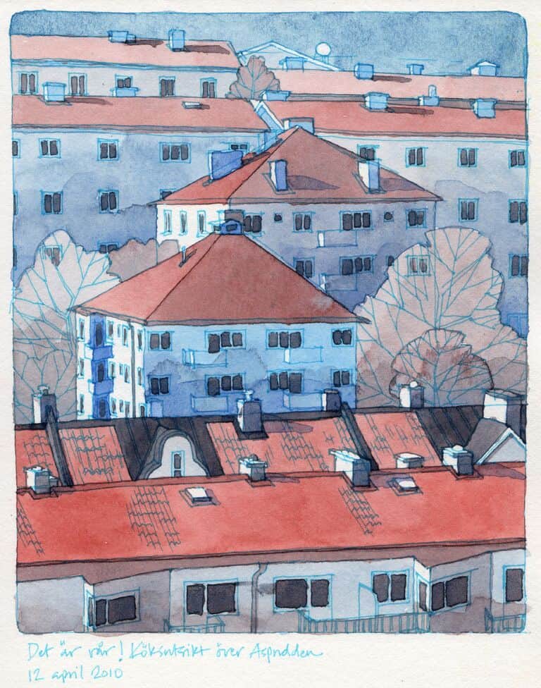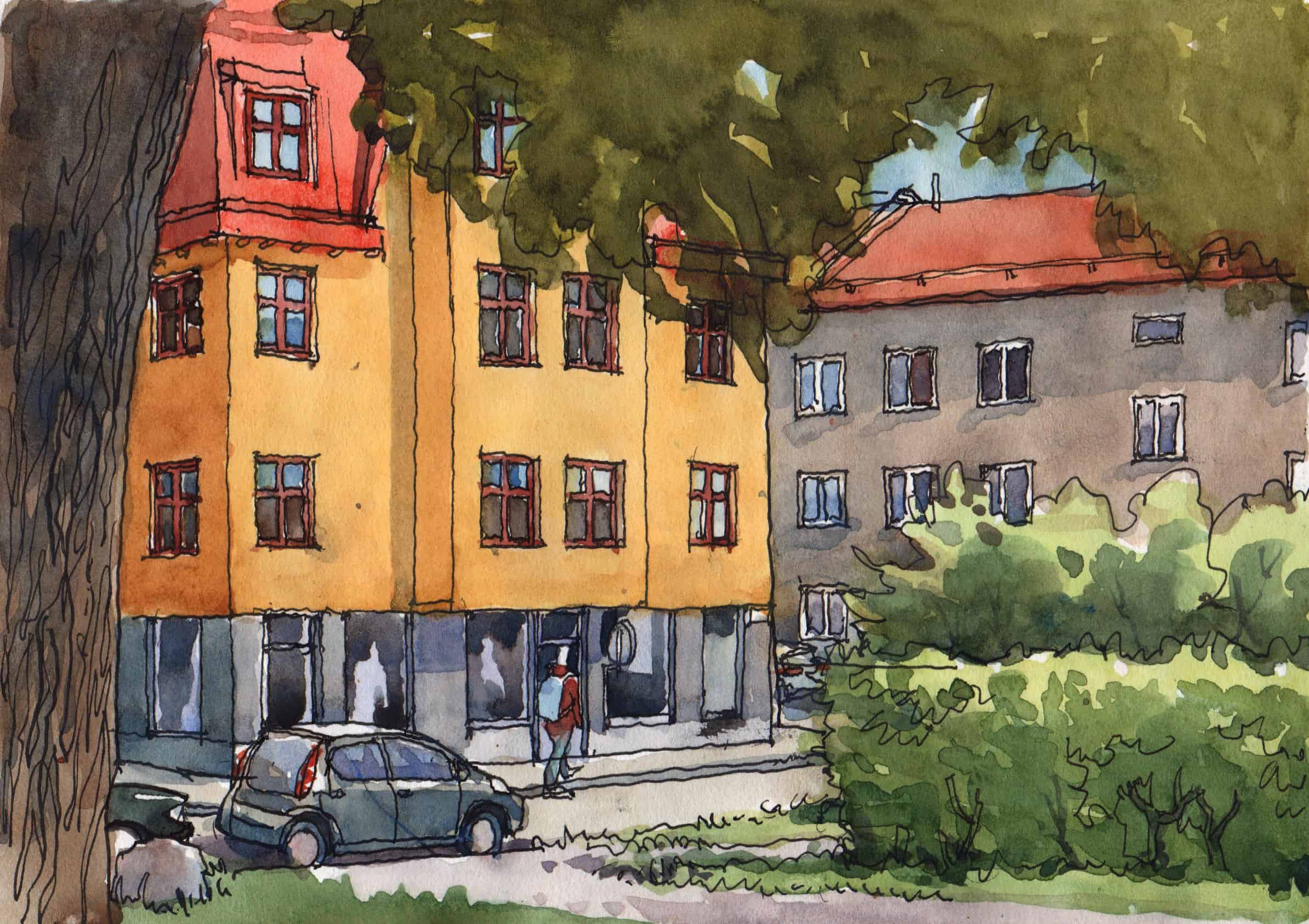​​Nina Johansson teaches art, design, photography, and filmmaking in Stockholm, Sweden. She’s legendary among Urban Sketchers for her book of sketches on Sagrada Familia in Barcelona, and her beautiful watercolors of places around the world. You can see more of her work at ninajohansson.se..